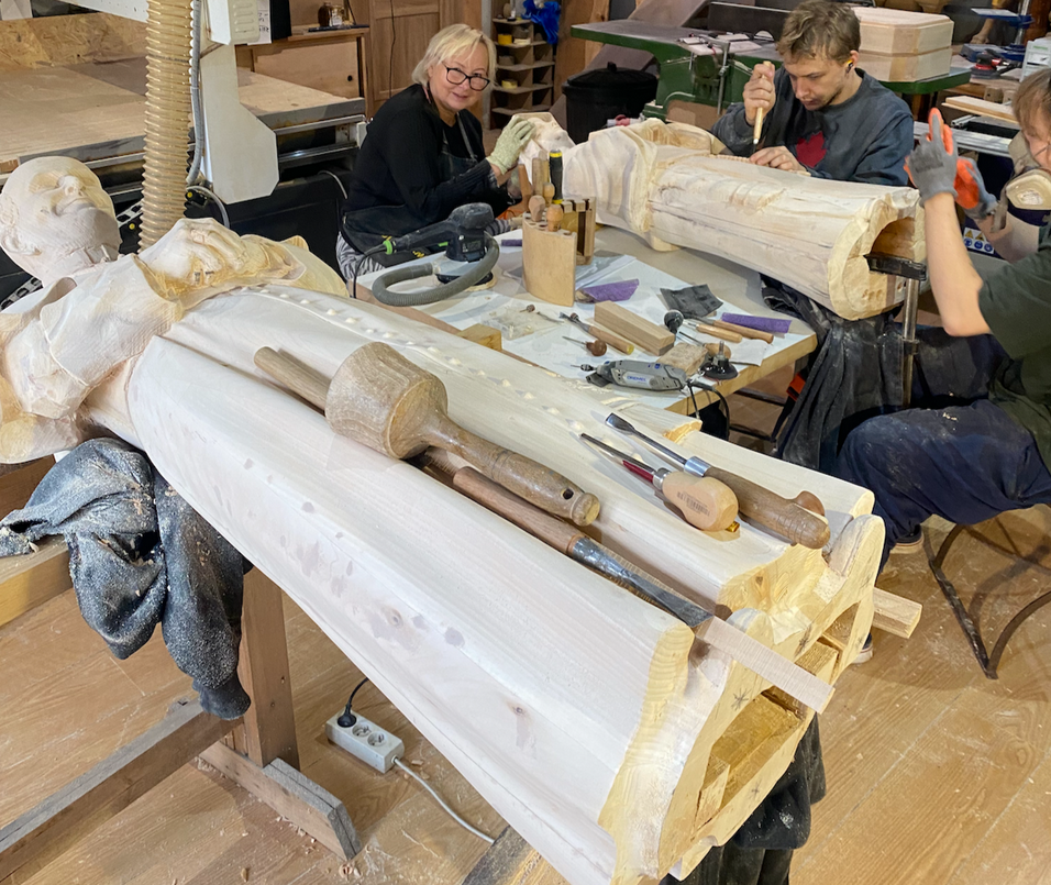 Najwięcej czasu poświęciliśmy ręcznej snycerce. To na tym etapie rzeźba nabiera charakteru.