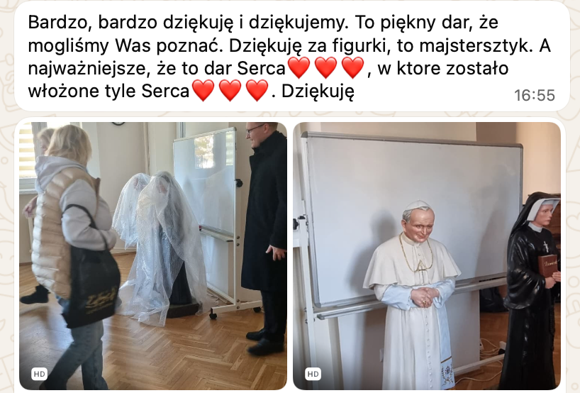 Gotowe rzeźby zostały przewiezione do kościoła i uroczyście poświęcone 11 listopada 2025 roku.